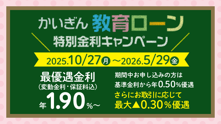かいぎん教育ローン 特別金利キャンペーンの実施について
