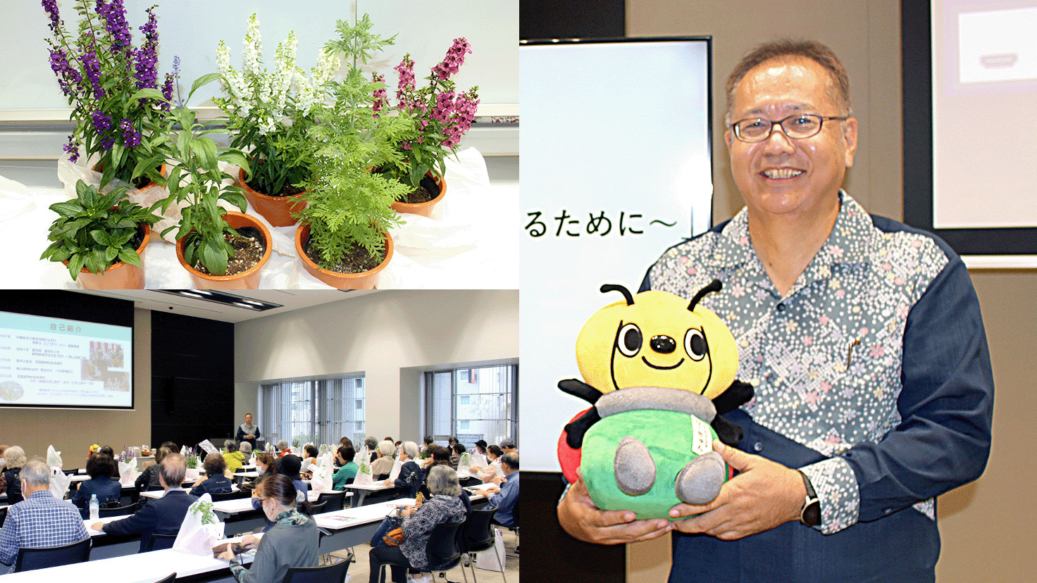 講師 : 池城 隆明 氏 配布苗木 : ブルーサルビア、アンゲロニア、ラベンダー、インパチェンス
