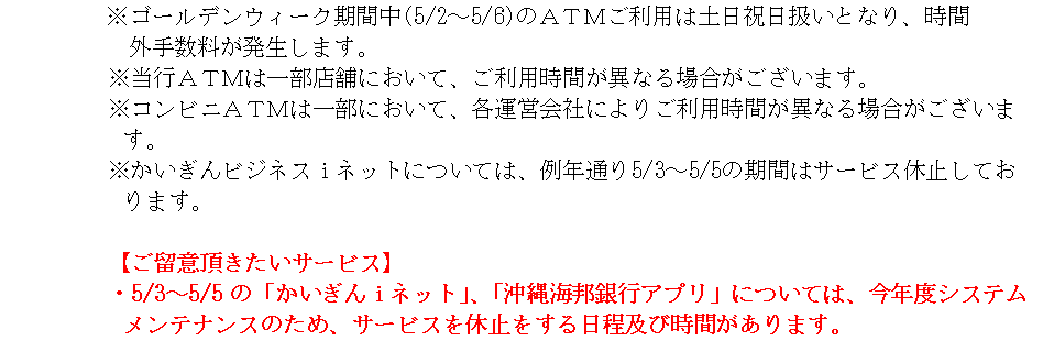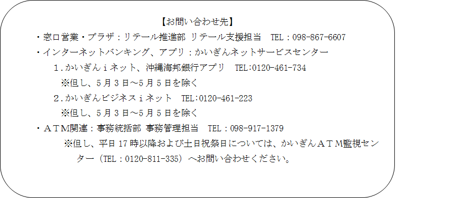 平素は沖縄海邦銀行をお引立ていただき、厚く御礼申し上げます。