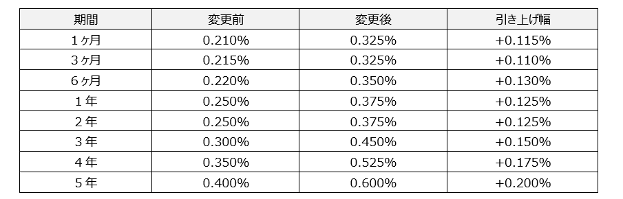 2.引き上げ内容    :  以下の通り ※表示利率は税引き前となります。